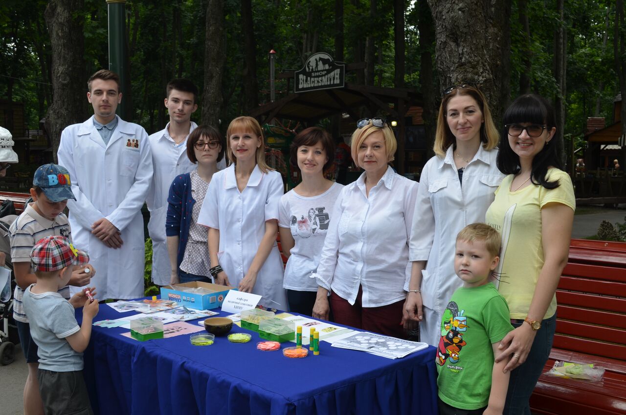 Кафедра медицинской генетики предложила всем желающим составить родословную, собрать пазл - хромосому, узнать клетку.